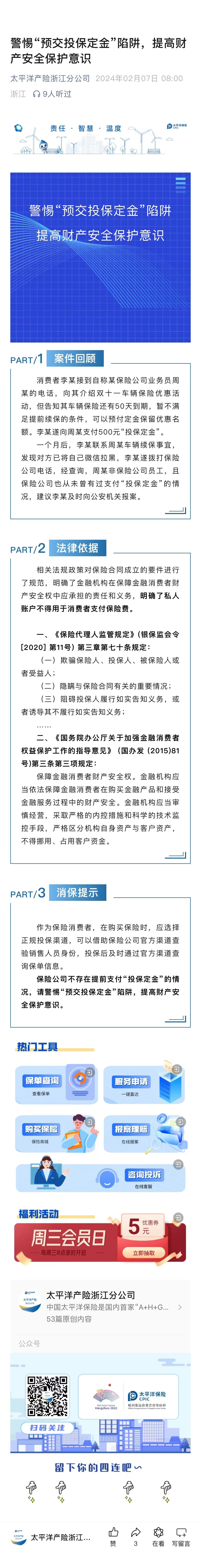 警惕“預(yù)交投保定金“陷阱,提高財(cái)產(chǎn)安全保護(hù)意識(shí)