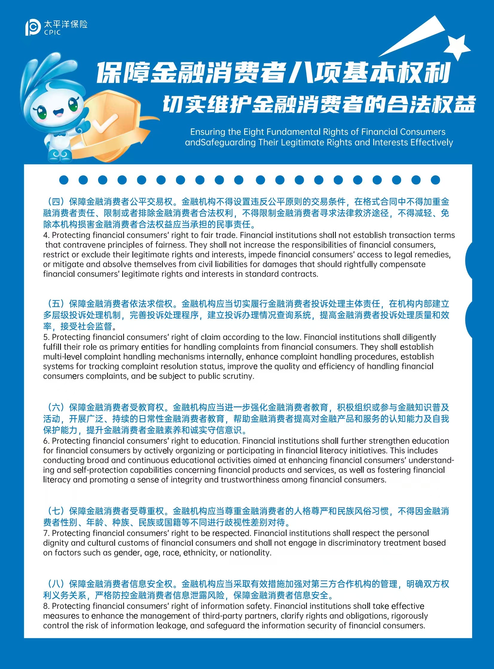 【保險知識】保障金融消費者八項基本權利(中英文版本)