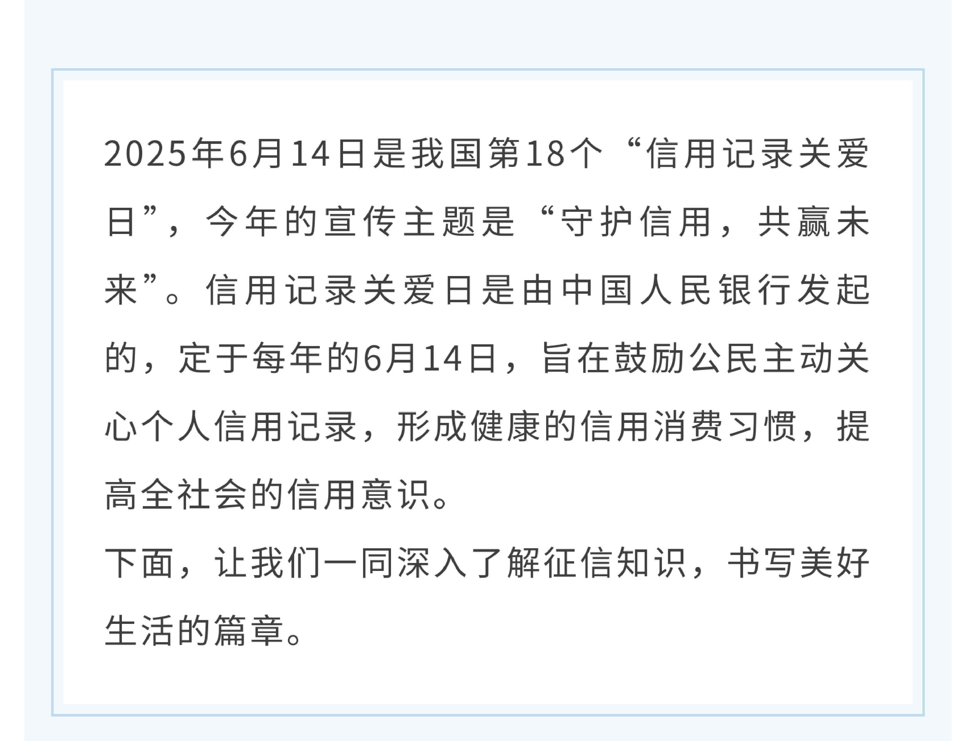 關(guān)愛征信丨守護(hù)信用,共贏未來——6·14信用記錄關(guān)愛日知識(shí)講堂