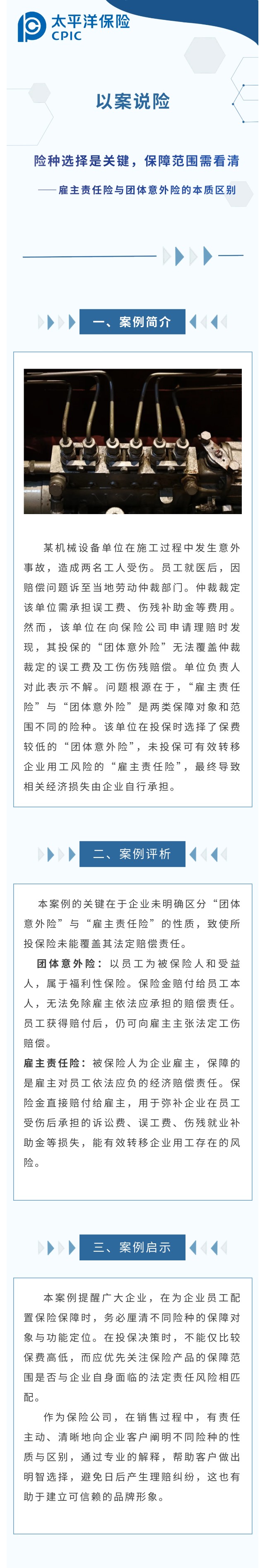 【以案說險(xiǎn)】險(xiǎn)種選擇是關(guān)鍵,保障范圍需看清 --雇主責(zé)任險(xiǎn)與團(tuán)體意外險(xiǎn)的本質(zhì)區(qū)別