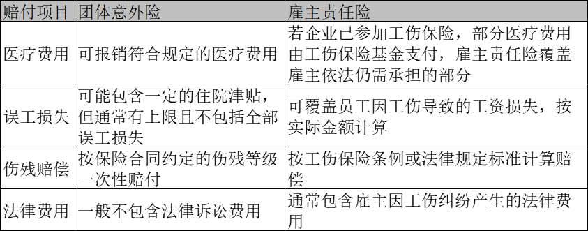 簡單來說,團(tuán)體意外險(xiǎn)是員工的保障,而雇主責(zé)任險(xiǎn)是給企業(yè)的保障。