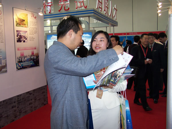 由中國人才交流協(xié)會、上海市人事局和浦東新區(qū)人民政府主辦的2007中國人才服務業(yè)博覽會于2007年11月15-16日在上海浦東展覽館舉行,中共中央政治局委員、上海市委書記俞正聲出席了開幕儀式并宣布開幕,中組部副部長、人事部部長尹蔚民,上海市委副書記、市長韓正到會致詞。眉州人才市場由分管領(lǐng)導親自帶隊參會,與多家國家級、省級人才市場親切交流,并達成一定的網(wǎng)上交流等合作意向。