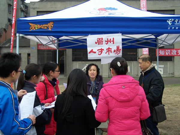 今年,該校采取了多項(xiàng)措施努力拓展畢業(yè)生就業(yè)空間,使雙選會(huì)取得了一些可喜變化,雙選會(huì)邀請(qǐng)本地規(guī)模人才市場(chǎng)——眉州人才市場(chǎng)與其聯(lián)合舉辦,眉州人才市場(chǎng)將雙選會(huì)情況及時(shí)在網(wǎng)站